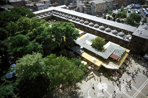 Mihrimah džamija nalazi se preko puta glavnog trajektnog pristaništa. Smeštena je na visokoj platformi sa pokrivenin tremom na ulazu na kojem se često skupljaju stariji muškarci da razgovaraju i posmatraju svet koji prolazi. Preko puta se nalazi džamija Jeni Valide, izgrađena 1710. godine i zelni grob sultanije Valide koji liči na veliki ptičiji kavez. Činili džamija, izgrađena 1640. godine, svoj naziv dobila je po prelepim pločicama kojima je uređena njena untrašnjost.